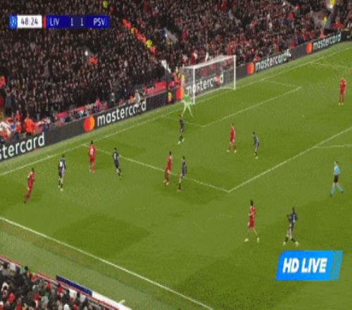 第4分钟,埃因霍温角球机会罚向禁区,范戴克“拦网”动作将球拦下,主裁判罚点球,佩里西奇主罚命中,埃因霍温1-0利物浦。